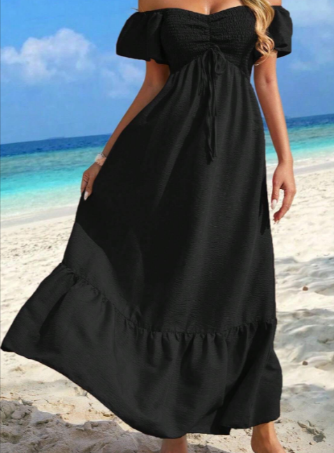 The SHEIN VCAY Women’s Solid Color Ruffled Off-Shoulder Vacation Dress was my ultimate birthday outfit choice, and it didn’t disappoint. Its off-shoulder design added a touch of elegance, while the ruffled details exuded a playful charm that perfectly captured the festive spirit of the occasion.